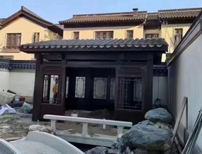 湖北黃岡小青瓦防腐木古建長廊 這個項目是湖北黃崗市的一個村里,定制的是一套古建小青瓦防腐木長廊,尺寸是長度11米,寬度為2.8米,總面積為30個平方米左右。陳總在網上找到我們